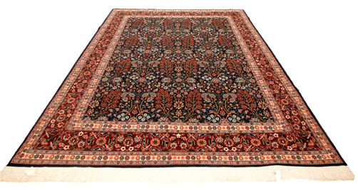 Hereke Handwoven Carpet, flower from seven mountains, Navy Blue.